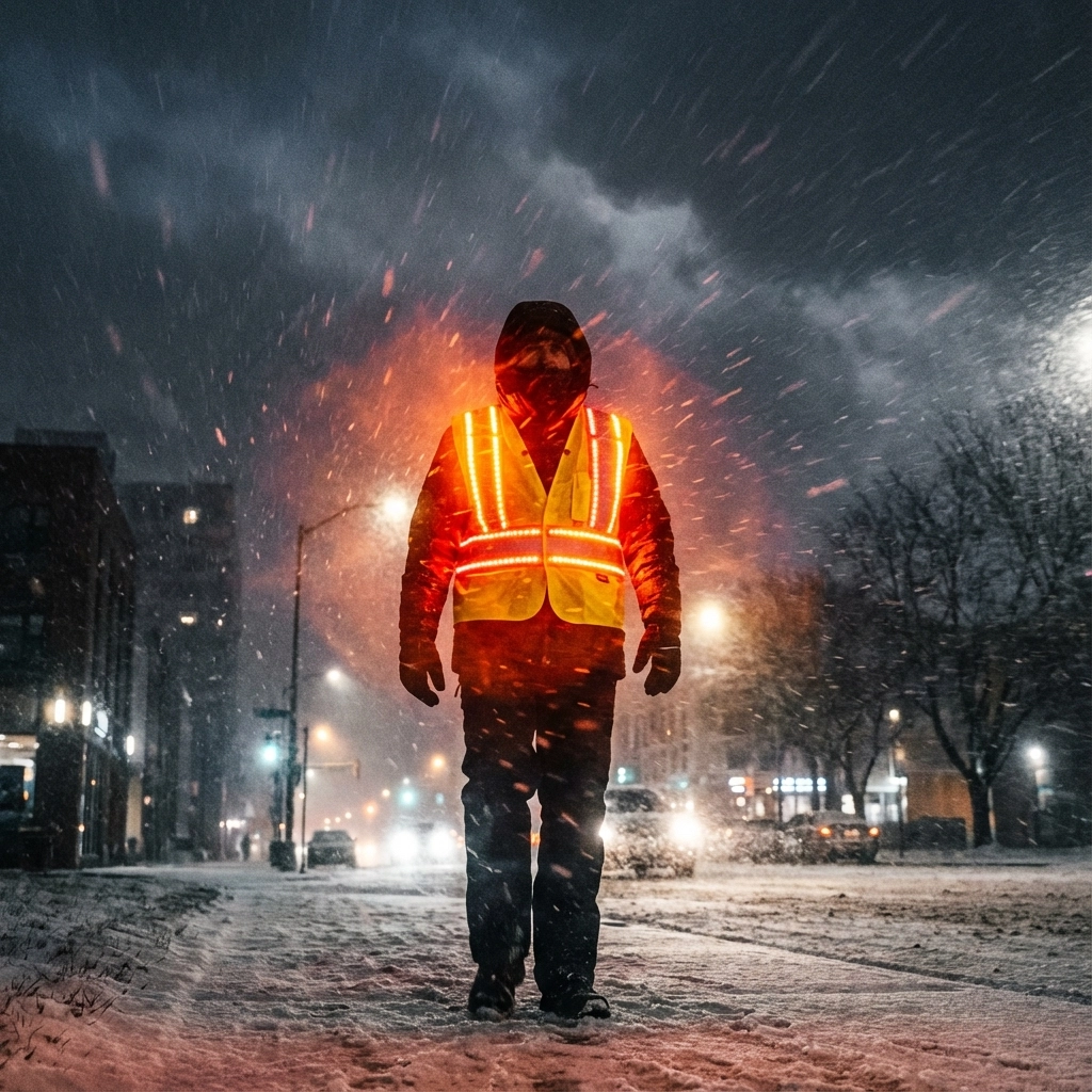 Here's a scenario that plays out thousands of times during every major snowstorm: you're out clearing your driveway when a neighbor or delivery truck comes down your street. They're driving slowly and carefully, but the combination of falling snow and limited visibility means they might not see you until the last second.
